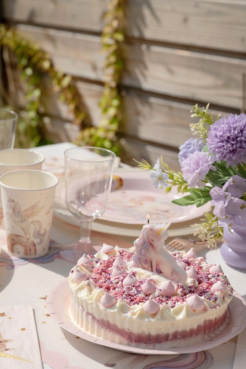 Tårtljuset passar fint till födelsedagstårtan och blir ett stämningsfullt inslag för barn som tycker om enhörningar, regnbågsfärger och fantasifulla teman. Tårtljuset är 7 x 7,5 cm stort.