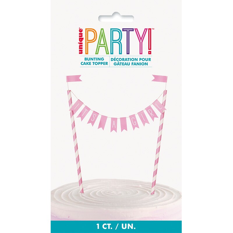 Tårtdekoration i rosa och vit färg med texten "It's a Girl". Roligt att ha på tårtan när det är dags för Babyshower. Dekorationen är tillverkad av papper och är ca 21 cm hög.