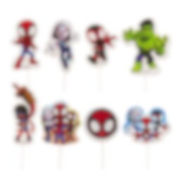 16 st. coola cake toppers med motiv av Spidey och hans fantastiska vänner. Perfekta för att sätta en superhjältetouch på bakverken inför kalaset. Storleken varierar mellan 8 och 10 cm i höjd.