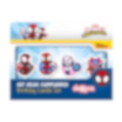 Gör tårtan till kalasets hjälteinsats med dessa tårtljus med Spidey och hans vänner! I detta 4-pack ingår motiv med Spidey, Spin, Ghost-Spider och en färgstark spindelsymbol, perfekta för ett superhjältekalas med fart och fläkt. En kul och dekorativ detalj som gör födelsedagen extra spännande för alla små Spidey-fans!