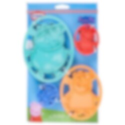 Skapa perfekt formade och detaljrika Peppa Pig-kakor med detta set. Varje form har en dubbel funktion: en sida för att skära ut kakans form och den andra för att göra detaljerade mönster.