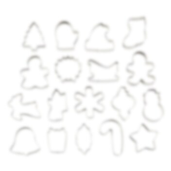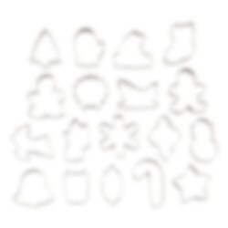 Ett komplett set med 18 st. kakformar med olika fina julmotiv. Roliga att använda när det är dags för det årliga julbaket. Formarna är 7-9 cm stora.