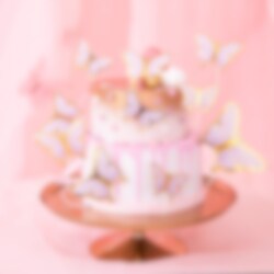 10 st. vackra tårtdekorationer i form av lila fjärilar med eleganta guldfolierade detaljer. Setet inkluderar även 10 flexibla tunna pinnar och 10 limprickar, så att du enkelt kan fästa och arrangera fjärilarna på din tårta. Storlek på fjärilarna är från 5 till 9 cm.