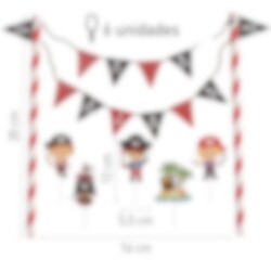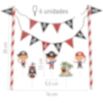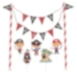 Ge kalaset en riktig piratkänsla med detta tårtdekorationskit! Med pirater, en skattkarta, en piratflagga och en girlang blir tårtan en del av ett spännande sjörövaräventyr. Girlangen är 20 cm hög, medan tårtdekorationerna är mellan 5,5 och 12 cm – perfekt för små sjörövare som älskar piratkalas!