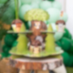 Skapa en magisk känsla med denna underbara muffinsställning som föreställer ett träd i skogen, dekorerad med charmiga små skogsdjur både på fram- och baksidan.
