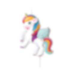 Förvandla födelsedagstårtan till en magisk upplevelse med detta 8 cm höga enhörningsljus. Med sin färgsprakande man och glittrande vingar blir det en förtrollande detalj på kalaset. Perfekt för alla små drömmare som älskar enhörningar och sagor!