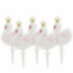 5 st. tårtljus med vackra motiv av eleganta svanar med pärlemor/rosa glitter. En fin detalj att ha på tårtan när det är dags för kalas. Tårtljusen är ca 5 cm höga.