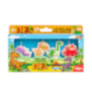 ✔️ Innehåller 4 tårtljus med olika dinosauriemotiv