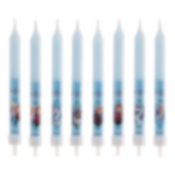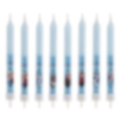 8 st. ljusblå tårtljus att dekorera tårtan med till Frost kalaset. Ljusen är ca 9 cm höga.