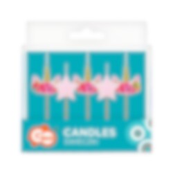 5 st. söta tårtljus med motiv av enhörningshorn och rosa stjärnor. Dessa ljusen gör sig utmärkta till ett kalas med enhörningstema. Tårtljusen är mellan 4-8 cm stora.