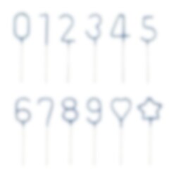 Blå tomtebloss i form av siffrorna 0-9 att dekorera tårtan med inför festen. Förutom siffror finns även en stjärna och ett hjärta. Tomteblossen är 17 cm höga och säljs styckvis. Tomteblossen brinner i ca 30 sekunder.
