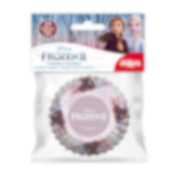 25 st. muffinsformar i vacker pastell lila/vit färg med motiv av prinsessorna Anna och Elsa från filmen Frost 2. Använd dessa för att baka fina muffins till ditt kalas med Frost som tema. Formarna är ca 5 cm i botten.