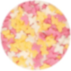 Vackert strössel som föreställer fjärilar i färgerna gul, vit och rosa. Snyggt att strö över tårtan eller bakelserna inför kalaset. Burken innehåller 50 gram.