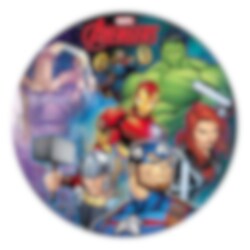 Tårtbild av god sockerfri fondant med coolt motiv av superhjältarna från Avengers. Tårtbilden är färdig att läggas direkt på tårtan och har ett skarpare och mer detaljerat tryck än vad en oblatbild har. Dessutom har bilden en god vaniljsmak. Bilden är ca 20 cm i diameter.