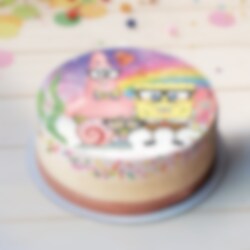 Tårtbild av oblat med motiv av SvampBob. Baka en egen tårta med detta snygga motiv. Bilden som är 20 cm i diameter är enkel att använda. Tårtbilder av oblat är gluten- och laktosfria och har inget tillsatt socker. Passar för vegetarianer.