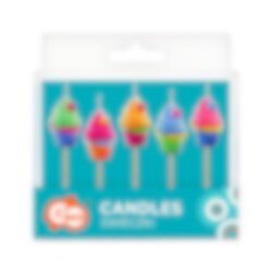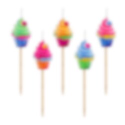 5 st. tårtljus med motiv av färgglada Cupcakes att pryda tårtan med. Tårtljusen är mellan 4-8 cm stora.