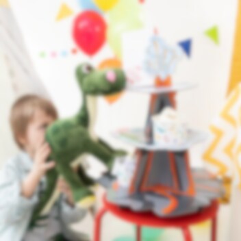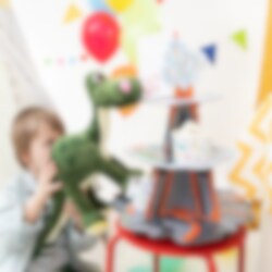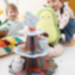 Låt kalaset explodera i feststämning med denna unika muffinsställning i vulkantema! Med tre våningar och en imponerande vulkan på toppen blir den en perfekt centerpiece på dessertbordet. Ställningen är 43 cm hög och 34 cm bred, och passar utmärkt för att servera muffins, cupcakes eller andra godsaker på ett spektakulärt sätt. Perfekt för dinosauriekalas och äventyrliga teman!
