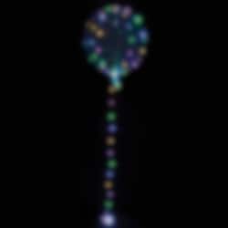 Ballongen blir ca 45 - 56 cm i diameter när den är uppblåst och fylls upp med helium. Ljusslingan är ca 5 meter lång och behöver 2 st. AA batterier som ej ingår i förpackningen. Att tänka på är att ballongen måste blåsas upp tills den blir som ett stort klot för att den ska kunna sväva.