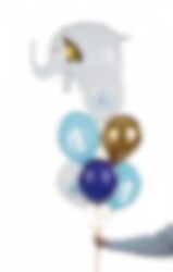 Snygg ballongbukett av hög kvalité i fina färger med blått 1-årstema. En rolig dekoration att klä rummet med när du ska ha 1-årskalas med elefanttema.