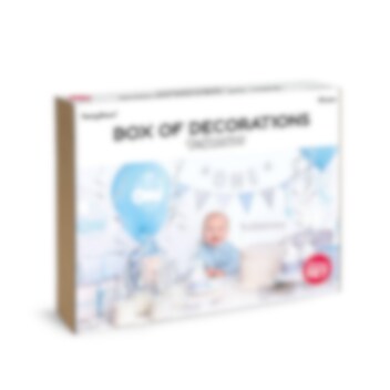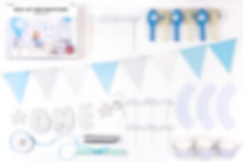 Detta färdiga dekorationskit med 1-årstema i blått och silver inkluderar: