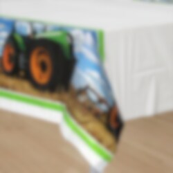 Stor och häftig bordsduk av plast med motiv i traktortema. Täck bordet med denna för att skydda det mot kalasspill, samtidigt som den blir en fin dekoration. Bordsduken är ca 137 x 259 cm stor.