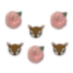 6 st. sockerdekorationer föreställande rådjursansikten och rosa blommor från temat Deer little one. Dekorera tårtan med dessa inför 1-årskalaset med Deer little one som tema.