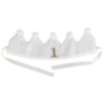 Fira din lilla 1-årings födelsedag med stil med denna söta tygkrona! Den krämfärgade kronan har pom pom-dekorationer och knytband av grosgrain. Perfekt för att skapa ett minnesvärt första födelsedagsfirande.