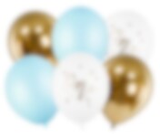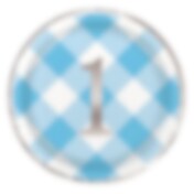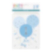 Blårutiga Kalaspåsar med ballonger 1 år 8-pack