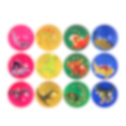 Kul studsboll med en dinosaurie inuti. En rolig sak att lägga i kalaspåsen när det vankas dinosauriekalas. Studsbollarna är ca 4,3 cm stora och finns i olika färger och med olika dinosaurier. Säljs osorterade och styckvis.