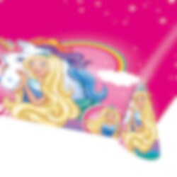 Jättefin bordsduk av plast med motiv från Barbie Dreamtopia. Bordsduken är ca 180 x 120 cm stor.