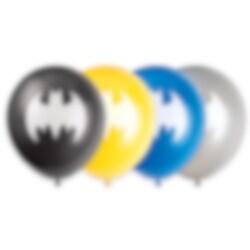8 st. ballonger av latex i fina färger som har motiv från Batman. Kan blåsas upp med luft eller helium. Blir ca 28 cm i diameter uppblåsta.