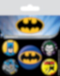 Gör väskan, jackan eller pennfodralet extra coolt med dessa Batman-knappar! Setet innehåller 5 stycken knappar med olika motiv från DC Comics klassiska hjälte, inklusive den ikoniska Batman-loggan och Jokern.