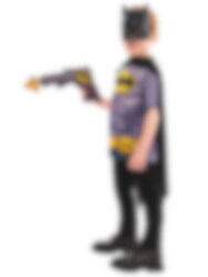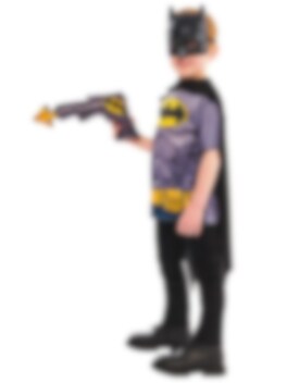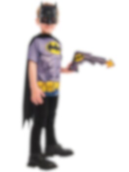 Klä ut dig till Gothams modige hjälte! Det här Batman-setet innehåller allt som behövs för att bekämpa skurkar, tröja med tryckt muskulatur, mask, mantel och en uppblåsbar Bat-blaster.