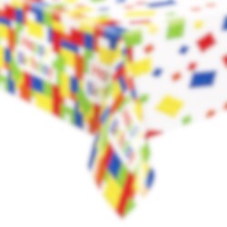 Skydda bordet och skapa kalaskänsla med denna plastduk i färgglatt byggklossmotiv. Med texten "Happy Birthday" längs kanterna passar den perfekt till barnkalaset med byggtema. Duken är 137 x 213 cm stor och enkel att torka av efter festen.