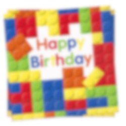 Duka upp till ett färgsprakande barnkalas med dessa byggkloss-servetter. Med texten "Happy Birthday" passar de perfekt till födelsedagsfirande för små byggfantaster. Servetterna är 2-lags och är 33 × 33 cm stora när de är helt utvikta.