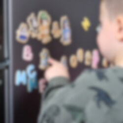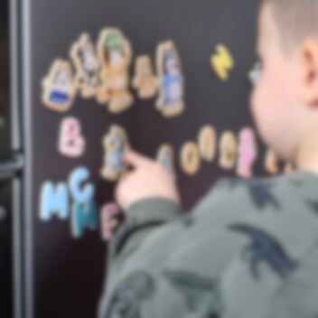 Genom att leka med bokstäver och figurer kan barnet öva på att känna igen former, ljuda ord och bygga namn. Bluey är en älskad Blue Heeler-valp som med sin fantasi och nyfikenhet förvandlar vardagen till en rolig upplevelse. Med detta set blir varje stund vid kylskåpet till ett nytt äventyr.