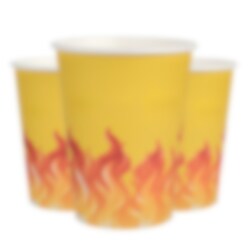 När det hettar till på kalaset behövs det något svalkande, och vad passar bättre än att servera drycken i dessa eldiga pappmuggar? Muggarna är ca 9,7 cm höga och rymmer 270 ml.