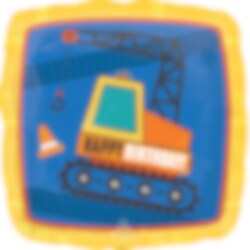 Folieballong i färgerna gul, orange och mörkblå och med motiv av en cool lyftkran med texten "Happy Birthday". En tuff dekoration att ha med på kalaset med fordonstema. Ballongen är ca 43 cm uppblåst och blåses upp med luft eller helium.