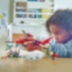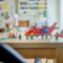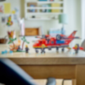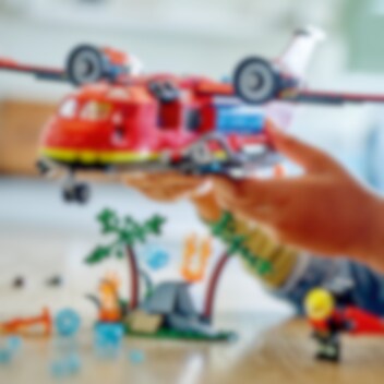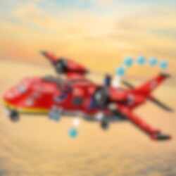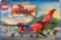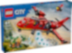 En avlägsen skogsbrand härjar utom kontroll! Dags att sätta in mäktiga LEGO® City Brandräddningsplan. Ladda planets vattentankar och lyft mot skyn för att ta itu med branden. Svep lågt över lågorna för att släppa ner stora mängder vatten. Lossa sedan de kraftfulla brandsläckarna och skicka ut den futuristiska brandmannen med jetpack för att släcka lågorna och rädda dagen. Lycka till!