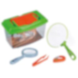 Settet innehåller allt det du behöver för att utforska naturen. Du kan fånga fjärilar med nätet, plocka upp skalbaggar med pincetten och studera de närmare under förstorningsglaset. Du kan även förvara dem i lådan. Hur ser till exempel en nyckelpiga ut på nära håll? Utforska naturen och undersök vad du hittar. Det är både lärorikt och skojigt. Lämplig för barn från 4 år.
