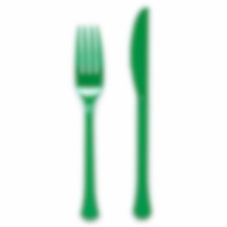 24 st. plastbestick i grön färg inkluderar 12 knivar och 12 gafflar, och erbjuder en praktisk och hållbar lösning för ditt nästa kalas eller evenemang. Dessa bestick är återanvändbara och perfekta för enklare tillställningar där du vill ha en fin touch utan att kompromissa med hållbarhet. Den gröna färgen ger en festlig och inbjudande känsla, och passar utmärkt för olika teman och tillfällen. Besticken tål att diskas i maskin.