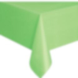 Bordsduk av plast i limegrön färg som är 137 x 274 cm stor.