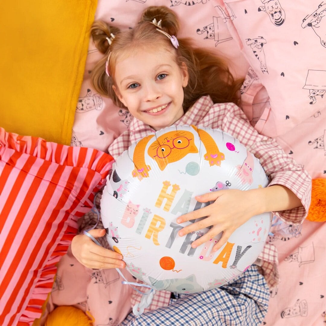 Fira födelsedagen med denna underbara folieballong med kattmotiv. Med sin lekfulla design och färgglada detaljer blir den en perfekt dekoration för kalaset.