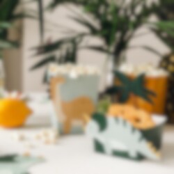 Gör kalaset ännu mer spännande med dessa coola snacksboxar i dinosaurie-tema. Varje förpackning innehåller sex boxar i tre olika modeller, perfekta för att servera snacks, godis eller små överraskningar i till dina gäster. Storleken på boxarna är 9,5 x 9,5 x 12 cm och 10 x 10 x 5 cm. Tillverkade av papp.