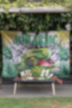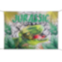 Stor väggdekoration eller backdrop till ditt kalas med dinosaurie-tema. Dekorationen förhöjer stämningen rejält och kan även användas som en fotobakgrund. Vem vill inte ta coola bilder framför en T-Rex?