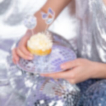Toppa kalaset med glitter och glädje med dessa discoinspirerade cake toppers. Setet innehåller åtta olika motiv, bland annat discokula, mikrofon, noter och texten "Let’s Dance", allt med ett glittrande holografiskt skimmer. Perfekta för cupcakes, tårta eller andra godsaker som behöver en extra dos partykänsla. Tillverkade av trä och papp och varierar i höjd mellan 9 och 11 cm.