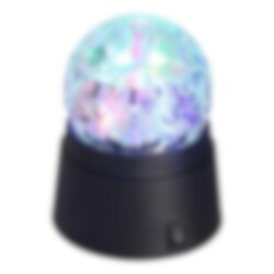 Starta den ultimata festen med den här diskokulan! Den är liten men effektiv! Kulans LED-ljus lyser upp i snygga, färgrika mönster. Diskokulan är perfekta att ge bort som gåva! Kulan kräver 3 x AA batterier (ingår inte). 12 cm hög.