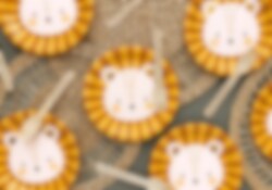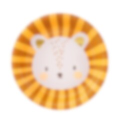 8 st. pappassietter med motiv av ett lejon med guldfolierade öron. Assietterna är 18 cm i diameter.