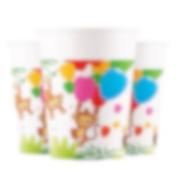 8 st. pappmuggar med färgglada motiv av djungeldjur och ballonger. Muggarna är 10 cm höga och rymmer ca 200 ml.