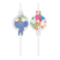 4 st. pappsugrör med motiv av olika söta djur. Sugrören är ca 21 cm långa och motiven är ca 6,5 cm i diameter.